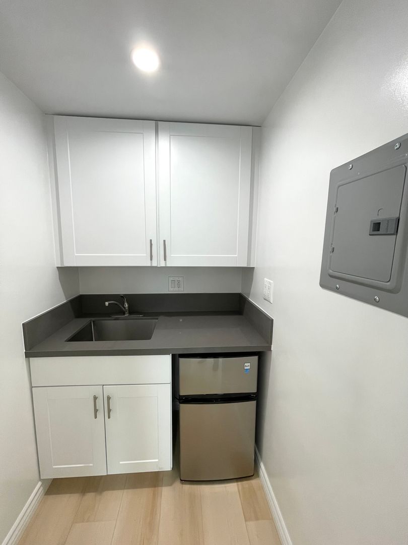 This floorplan has a kitchen sink and mini Fridge, not a full kitchen,