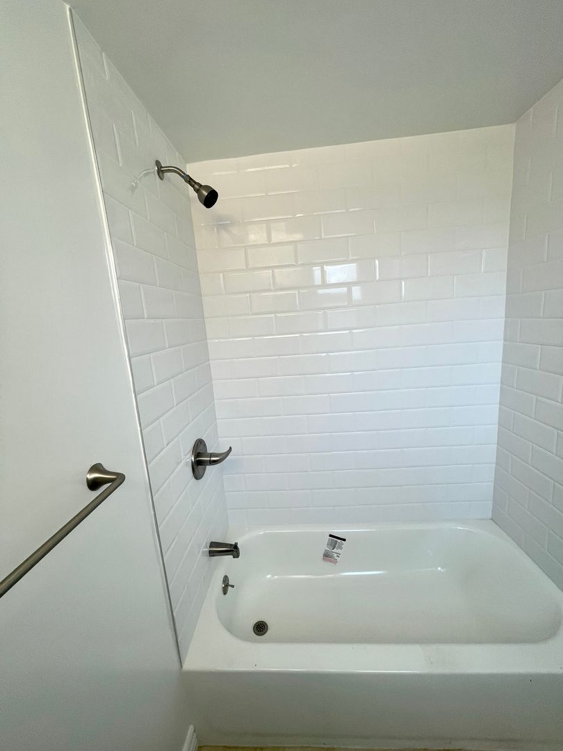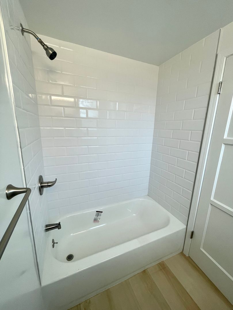 New Bathroom, with New Tub, New Art Deco Subway Tile, New Vanity,