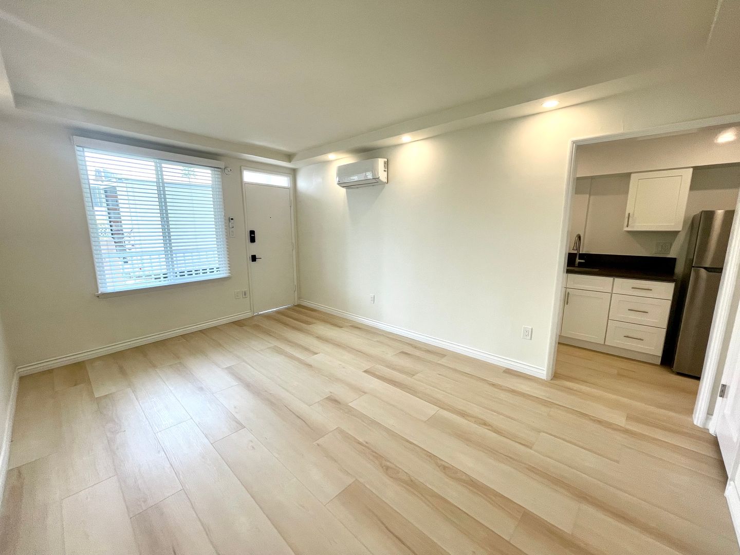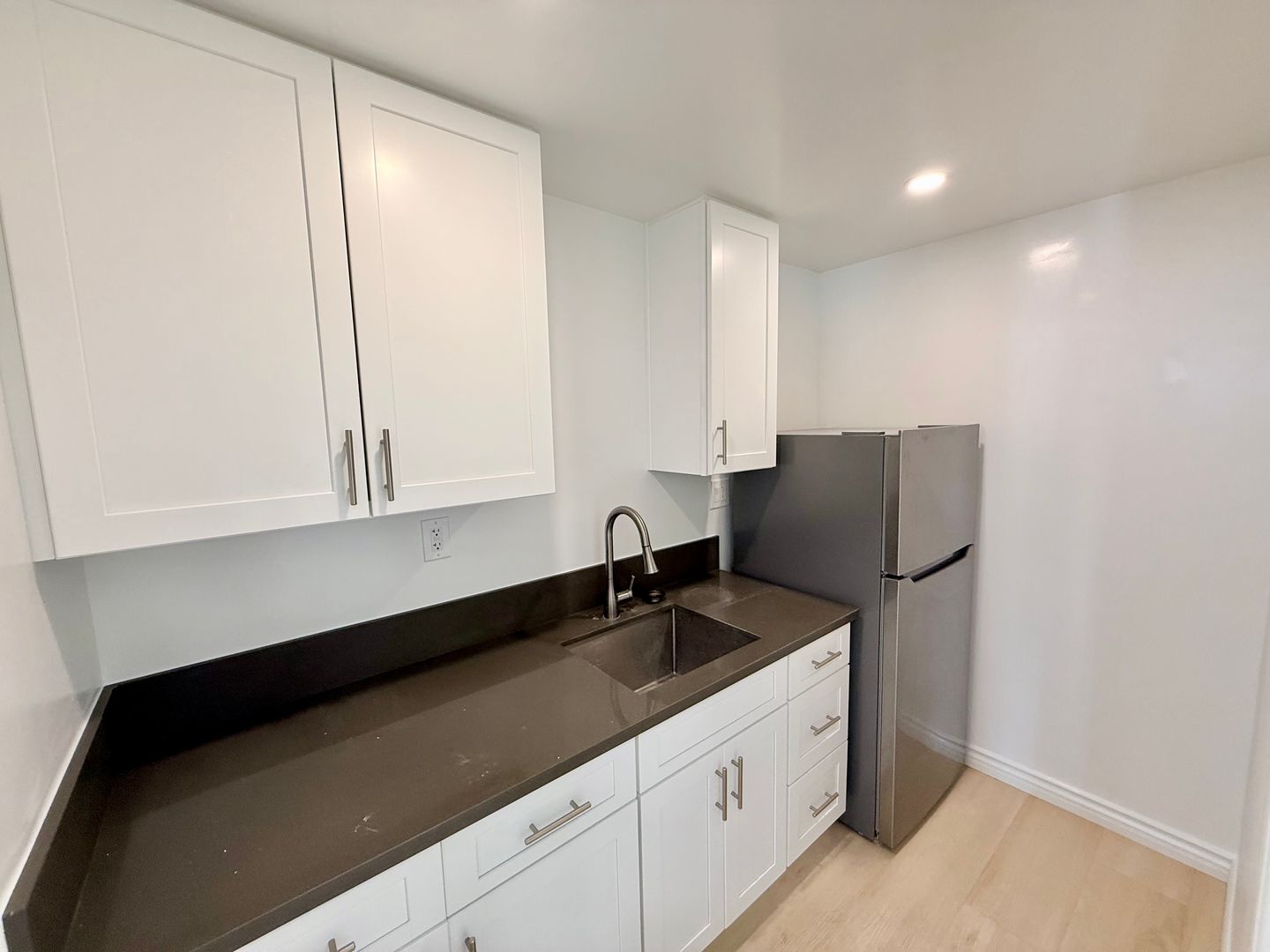 This floorplan has a kitchen sink, Large Full Size Stainless Steel Fridge, No Stove,