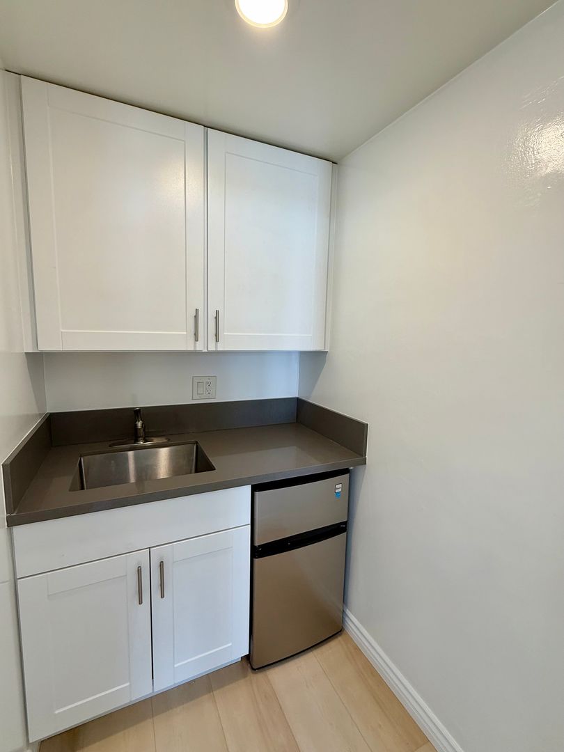 This floorplan has a kitchen sink and mini fridge, not a full kitchen,